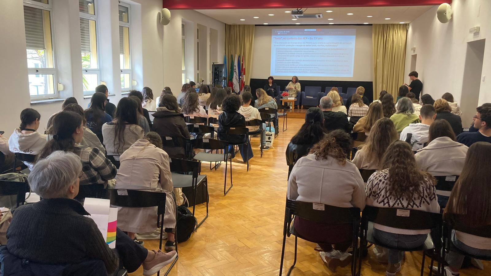 Imagem dos trabalhos no início da tarde O debate foi bastante intenso e participado, inclusive por parte dos estudantes, e a riqueza das comunicações poderá ser estudada e compreendida em maior profundidade com a publicação, no segundo semestre deste ano, do n.º 65 da revista Palavras, que vai lançar em breve uma chamada de trabalhos para publicação, tendo em conta o tema deste congresso / jornadas pedagógicas: o texto oral e o texto escrito, na sua relação dinâmica e atendendo às suas especificidades estruturais, funcionais e discursivas, bem como aos processos de continuidade, interdependência e transformação que caracterizam ambas as modalidades. A revista Palavras n.º 65 fará, no editorial, um balanço mais exaustivo dos trabalhos deste congresso / jornadas pedagógicas, destacando uma reflexão teórica-didática sobre o conceito de texto, a relação entre oralidade e escrita, organizada num continuum marcado por convergências e especificidades, a didática da escrita e o papel estruturante dos textos mentores, a reflexão sobre a inteligência artificial como copiloto nos processos de planificação, textualização, revisão, correção, reescrita e compreensão do oral e da escrita, desde que integrada num desenho didático rigoroso, crítico e eticamente informado, e, entre outros, uma reflexão alargada e pertinente sobre oralidade e inteligência artificial, convidando-nos a pensar novas formas de interação humano–máquina, novas categorias de polidez e novas questões éticas e pragmáticas. Mais informações em breve!Imagem do início da sessão de encerramento, com a apresentação da revista Palavras n.º 64, que vai ser publicada na próxima semana, e a capa da revista n.º 62/63, que foi publicada esta semana