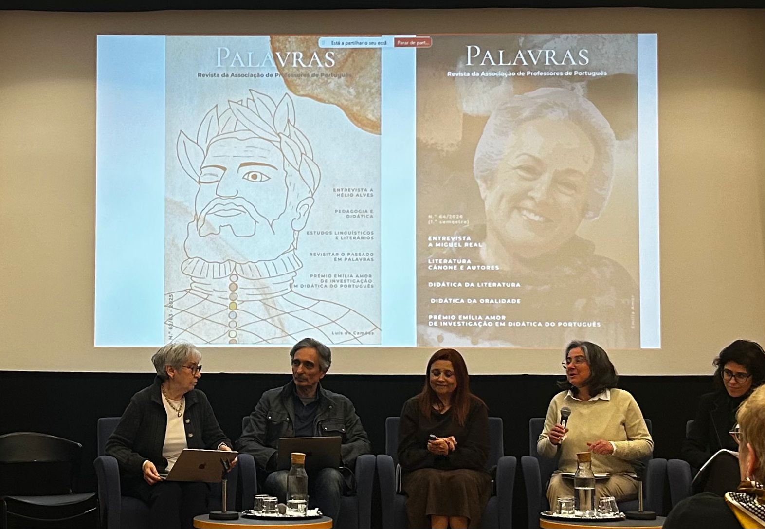 Imagem dos trabalhos no início da tarde O debate foi bastante intenso e participado, inclusive por parte dos estudantes, e a riqueza das comunicações poderá ser estudada e compreendida em maior profundidade com a publicação, no segundo semestre deste ano, do n.º 65 da revista Palavras, que vai lançar em breve uma chamada de trabalhos para publicação, tendo em conta o tema deste congresso / jornadas pedagógicas: o texto oral e o texto escrito, na sua relação dinâmica e atendendo às suas especificidades estruturais, funcionais e discursivas, bem como aos processos de continuidade, interdependência e transformação que caracterizam ambas as modalidades. A revista Palavras n.º 65 fará, no editorial, um balanço mais exaustivo dos trabalhos deste congresso / jornadas pedagógicas, destacando uma reflexão teórica-didática sobre o conceito de texto, a relação entre oralidade e escrita, organizada num continuum marcado por convergências e especificidades, a didática da escrita e o papel estruturante dos textos mentores, a reflexão sobre a inteligência artificial como copiloto nos processos de planificação, textualização, revisão, correção, reescrita e compreensão do oral e da escrita, desde que integrada num desenho didático rigoroso, crítico e eticamente informado, e, entre outros, uma reflexão alargada e pertinente sobre oralidade e inteligência artificial, convidando-nos a pensar novas formas de interação humano–máquina, novas categorias de polidez e novas questões éticas e pragmáticas. Mais informações em breve!Imagem do início da sessão de encerramento, com a apresentação da revista Palavras n.º 64, que vai ser publicada na próxima semana, e a capa da revista n.º 62/63, que foi publicada esta semana