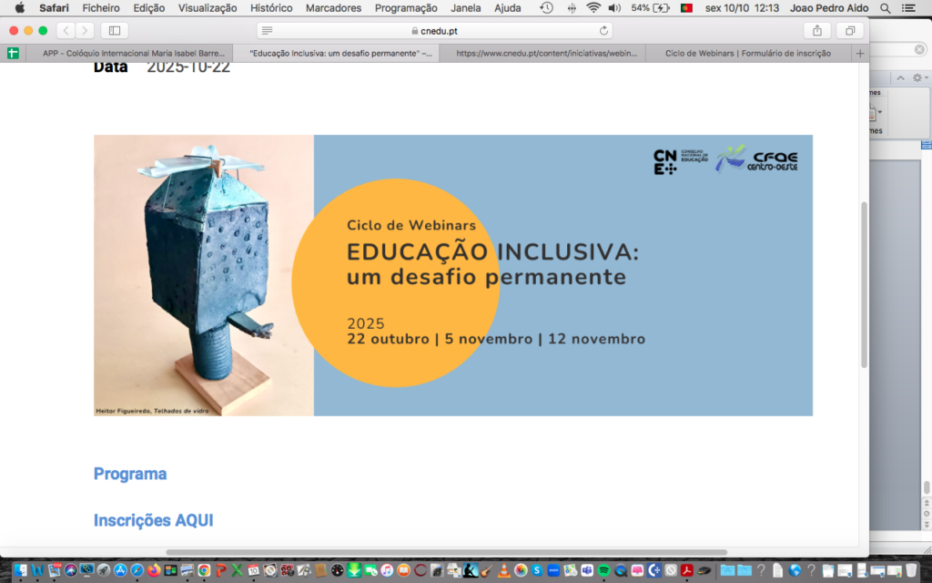 A realização deste ciclo de webinars, organizado pelo Conselho Nacional de Educação em parceria com o CFAE Centro- Oeste, enquadra-se na discussão sobre os valores e práticas vigentes em escolas portuguesas no contexto da educação inclusiva.