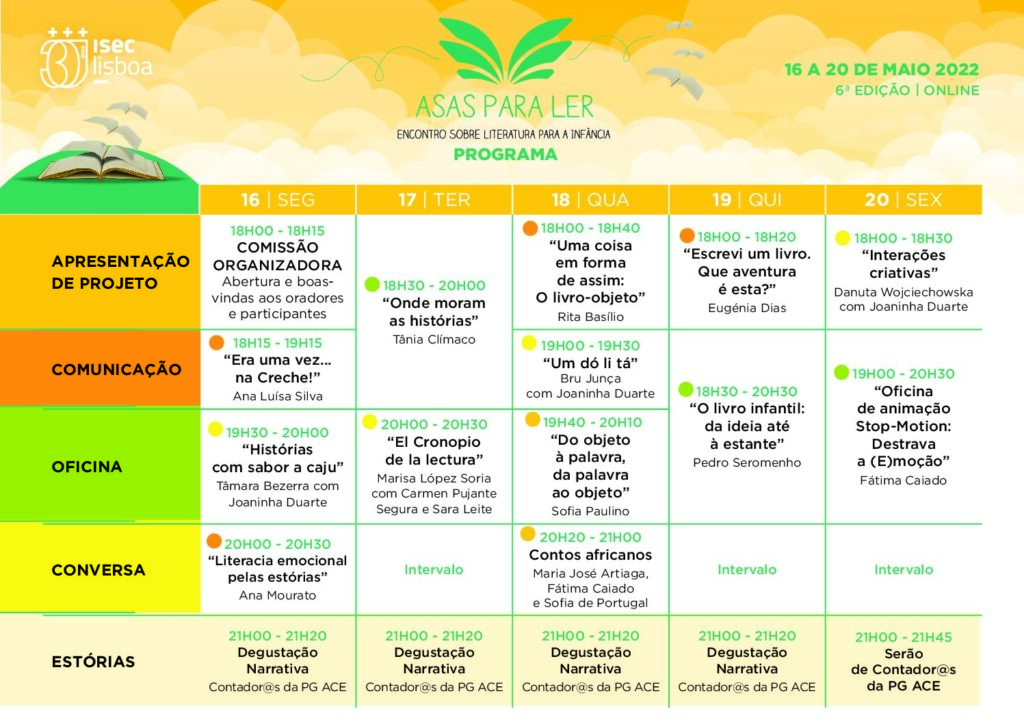 Entre os dias 16 e 20 de maio, realizar-se-á a 6.ª edição do encontro “Asas para Ler” que será totalmente online, em horário pós-laboral.