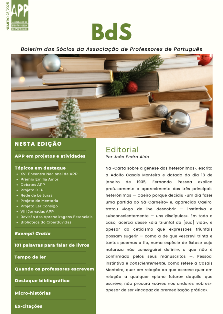 Nos artigos, destacamos uma reflexão sobre deslizes (que merecem a nossa atenção), uma reflexão sobre um acento que marca o tempo e uma terceira sobre o que perdemos quando deixamos de parar para procurar no dicionário» — uma leitura crítica a partir de um artigo de Louis Menand na revista The New Yorker.