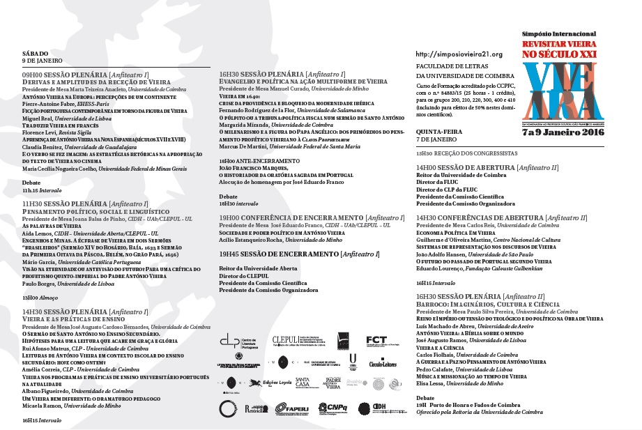 À luz deste escopo, o CLP, o CLEPUL e o IECCPMA, com o apoio do Círculo de Leitores e das Edições Loyola, editoras responsáveis pela publicação da obra completa de Vieira, uniram-se para realizar um Simpósio Internacional em ordem a revisitar Vieira hoje e atualizar o conhecimento deste autor e do seu século na relação com a complexidade de um mundo que então se globalizava.